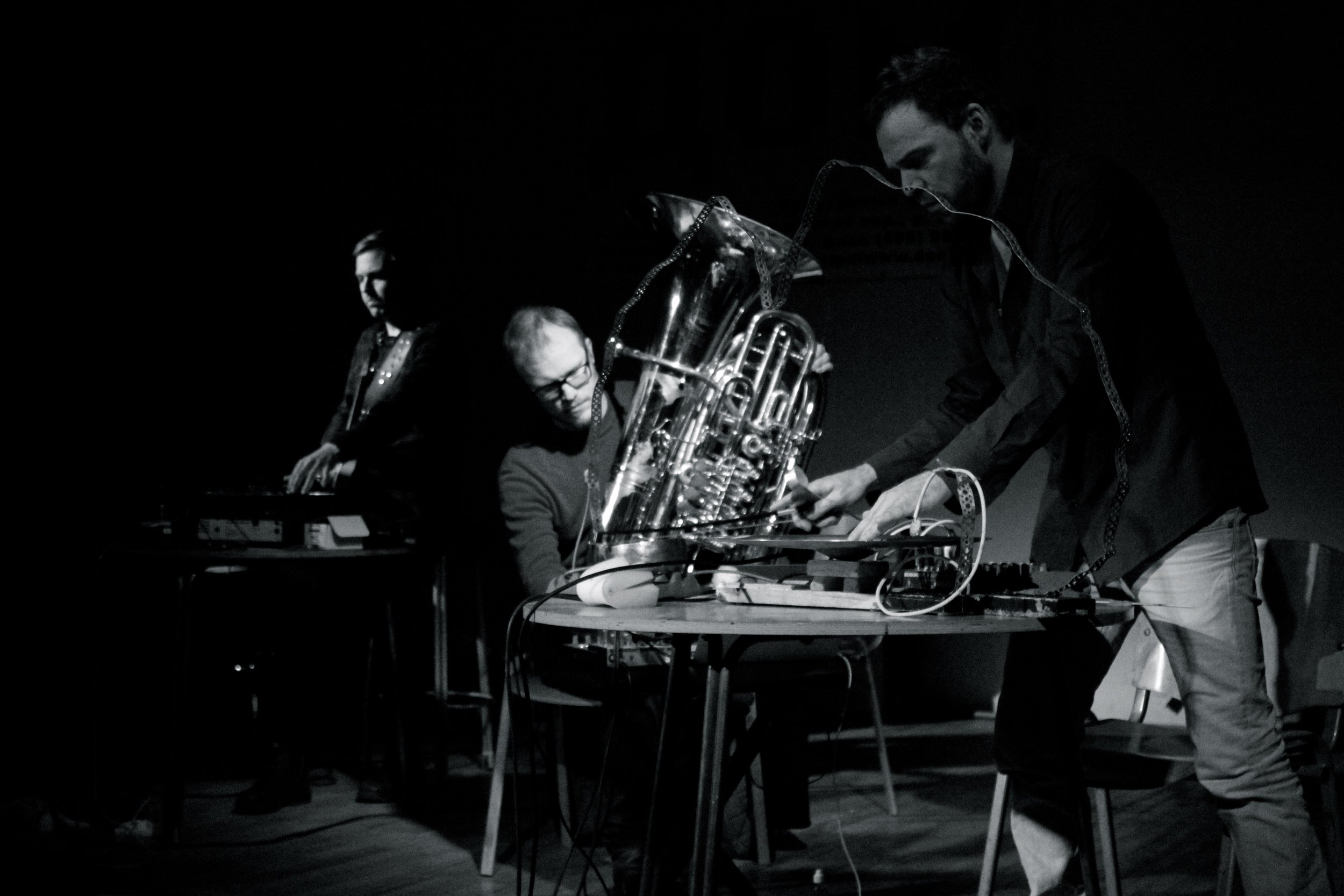 VERDENSTEATRET are artists from different art-fields who work together and make live-art and other art-related projects. They endeavour to use a collaborative process to deeply integrate different artistic disciplines into projects that bridge the gap between artistic boarders.Characteristic for their work is that they are building exquisite links between seemingly incompatible technologies and materials. The experimental use of audiovisual technology in a close dialogue with more traditional and historic tools of artistic expression results in complex orchestral works or space-related musical compositions.